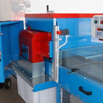 Система обрезки с вращающимися лезвиями на постоянной скорости; высота обрезки регулируется одной ручкой с индикатором; продвигающая лента с электронно регулируемой скоростью; ящик для отходов; предельный и пуск/стопный выключатель. Каждая деталь машины легко проверяется и очищается. Лезвие для обрезки с настраиваемой скоростью доступно как ДОПОЛНИТЕЛЬНОЕ ОБОРУДОВАНИЕ.