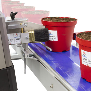 Машина для нанесения маркировки ETS печатает и наносит маркировку в реальном времени при помощи системы отслаивания пленки. Возможность создания маркировок на ПК или на сенсорном экране или нанесение предварительно напечатанных маркировок. Идеально подходит для маркировки поддонов и горшков даже движущихся.
