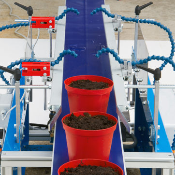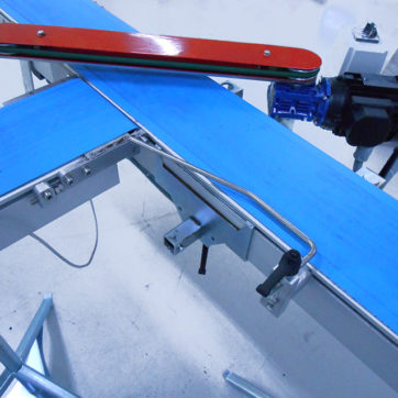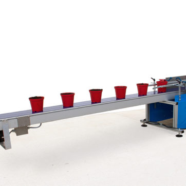 Доступно как ДОПОЛНИТЕЛЬНОЕ ОБОРУДОВАНИЕ: девиатор 90 ° для горшков или лотков; вариатор скорости; электрическая панель управления; колеса для транспортировки; ролик для скольжения ПВХ-ленты; боковые направляющие; радиочастотный выключатель; и т.п.