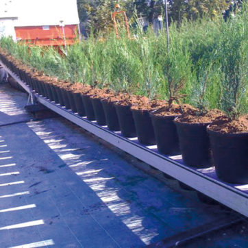 Модульная конвейерная лента для горшков и поддонов с алюминиевой рамой. Она представляет собой передвижные конвейерную ленту, регулируемую по высоте, с множеством дополнительных аксессуаров и универсальна в использовании. Алюминиевая рама с закрытым профилем, прочная и недеформированная; ПВХ-лента с двумя высокопрочными полиэфирными сетками. Включены электрические кабели и вилы.