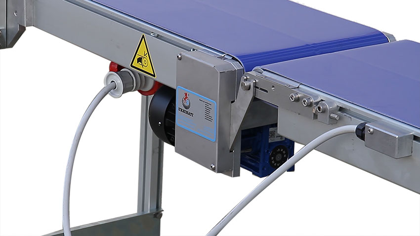 Доступно как ДОПОЛНИТЕЛЬНОЕ ОБОРУДОВАНИЕ: девиатор 90 ° для горшков или лотков; вариатор скорости; электрическая панель управления; колеса для транспортировки; ролик для скольжения ПВХ-ленты; боковые направляющие; радиочастотный выключатель; и т.п.