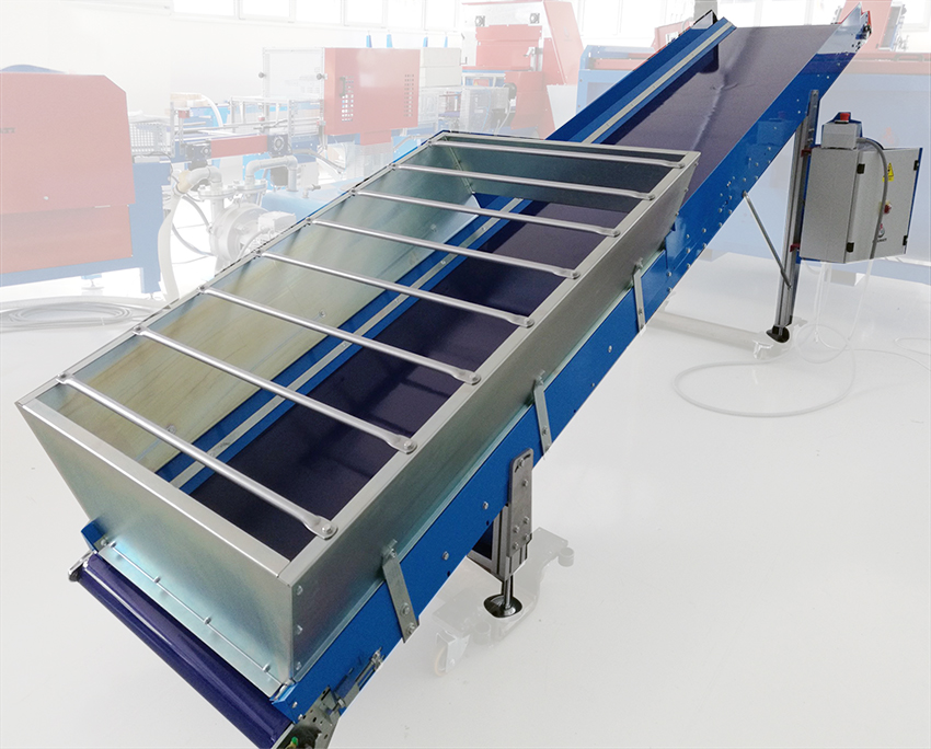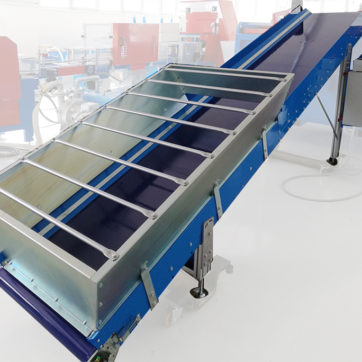 Компактная и прочная конструкция в специальном профиле; ПВХ-ремень с двумя высокопрочными полиэфирными сетками; диаметр приводного ролика 80 мм, высокая степень захвата, диаметр вспомогательного ролика 75 мм; скорость в соответствии с требованиями. Доступно как ДОПОЛНИТЕЛЬНОЕ ОБОРУДОВАНИЕ: вариатор скорости; электрическая панель управления; колеса для транспорта; боковые направляющие; специальные ножки; и т.п.