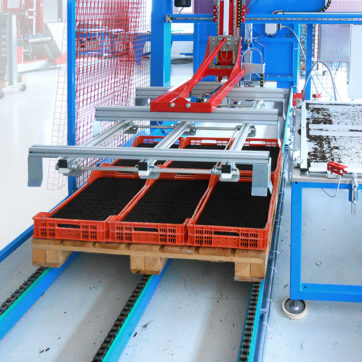 Автоматическая смазка с резервуаром на линейных подшипниках; доступен в правом и левом решениях. Доступно как АКСЕССУАРЫ: выгрузка палеток с противоположной стороны загрузки; вращающаяся втулка; составная втулка; съемщик палеток; позиционные ленты для погрузки; и т.п.