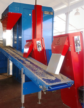 - Конвейерная лента на дне бункера с роликами с регулируемой скоростью.